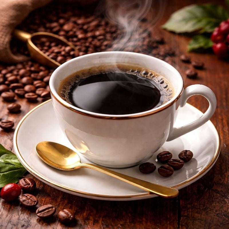 力強い苦味の奥に、カカオやダークチョコレートを思わせる濃厚なコクと、上品な甘みが静かに広がります。 重厚感のある味わいでありながら、後味は驚くほどなめらか。 ブラックはもちろん、ミルクと合わせても風味を損なわない、格調高い一杯です。